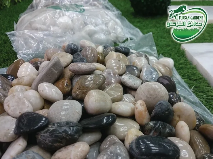 الحصى الملون (رمادي، بيج، وردي…):