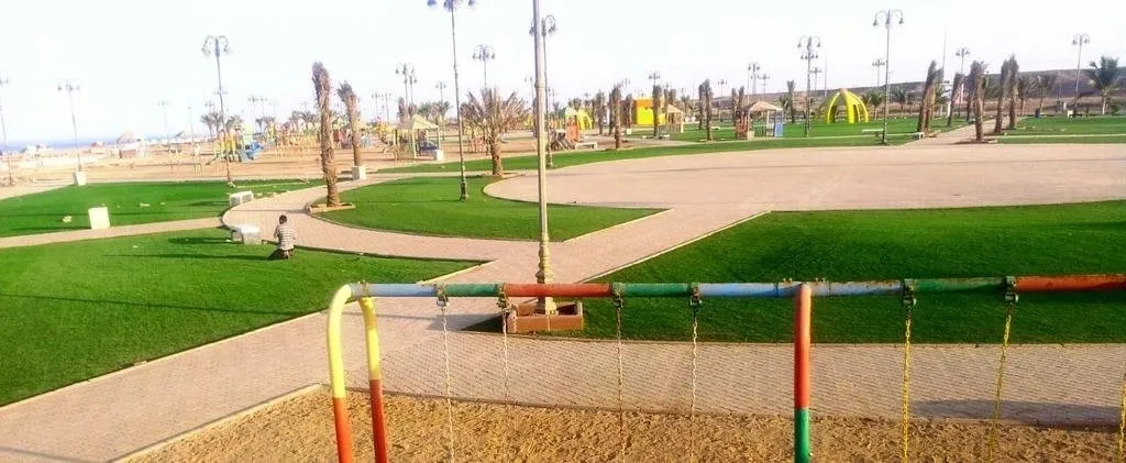 مشروع بلدية املج مسطحات خضراء وألعاب أطفال ما يقارب 13000 متر مربع